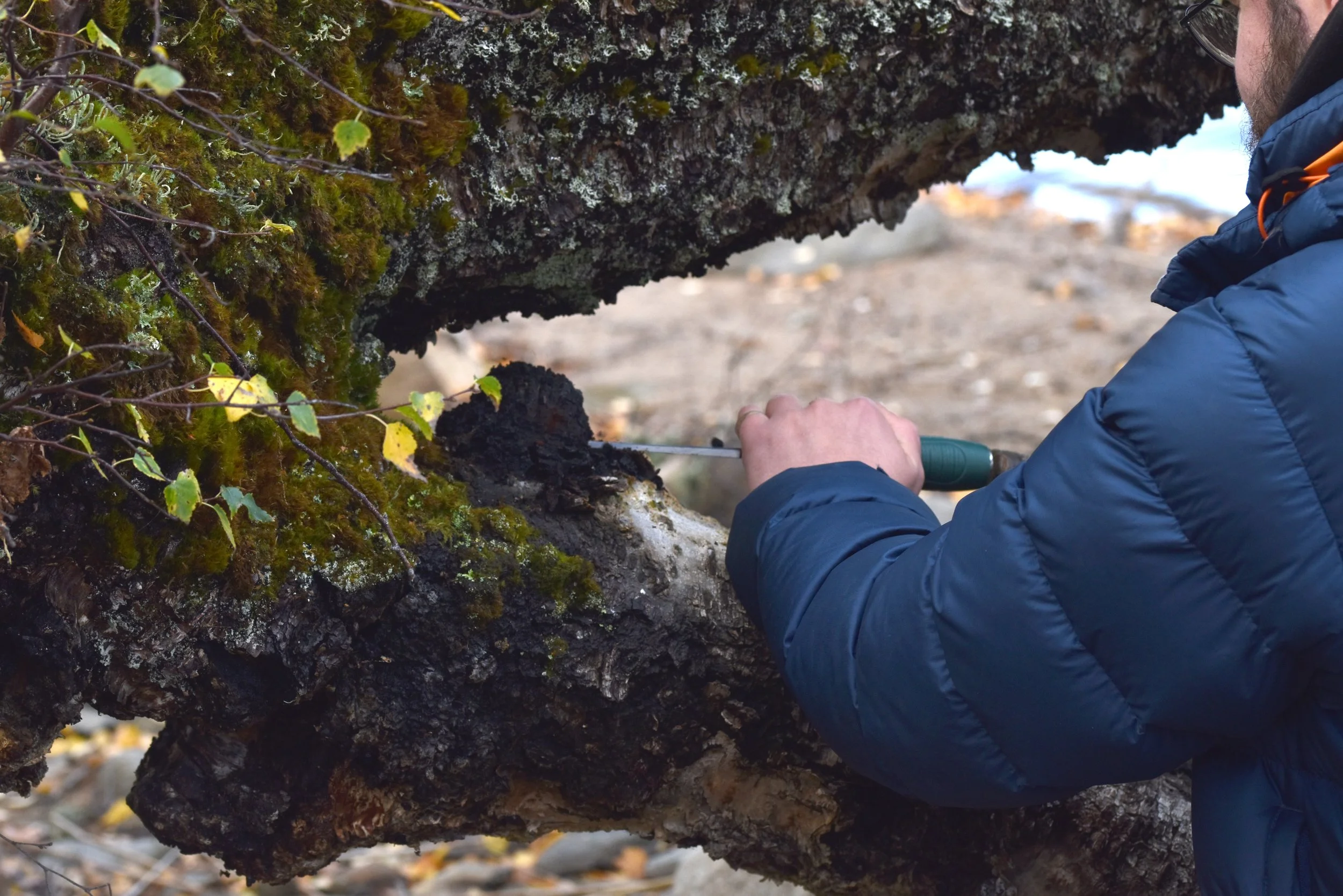 If you do plan to forage Chaga there are some basic guidelines that help make your practice more sustainable. Chaga conks being woody and hard need to be harvested using a small axe or a chisel and mallet. Striking the conk cleanly to avoid creating new wounds in the tree will reduce the chance of other fungal pathogens entering and accelerating tree death. There are also anecdotal reports that leaving behind a small piece of the conk increases the likelihood of conk regeneration.
